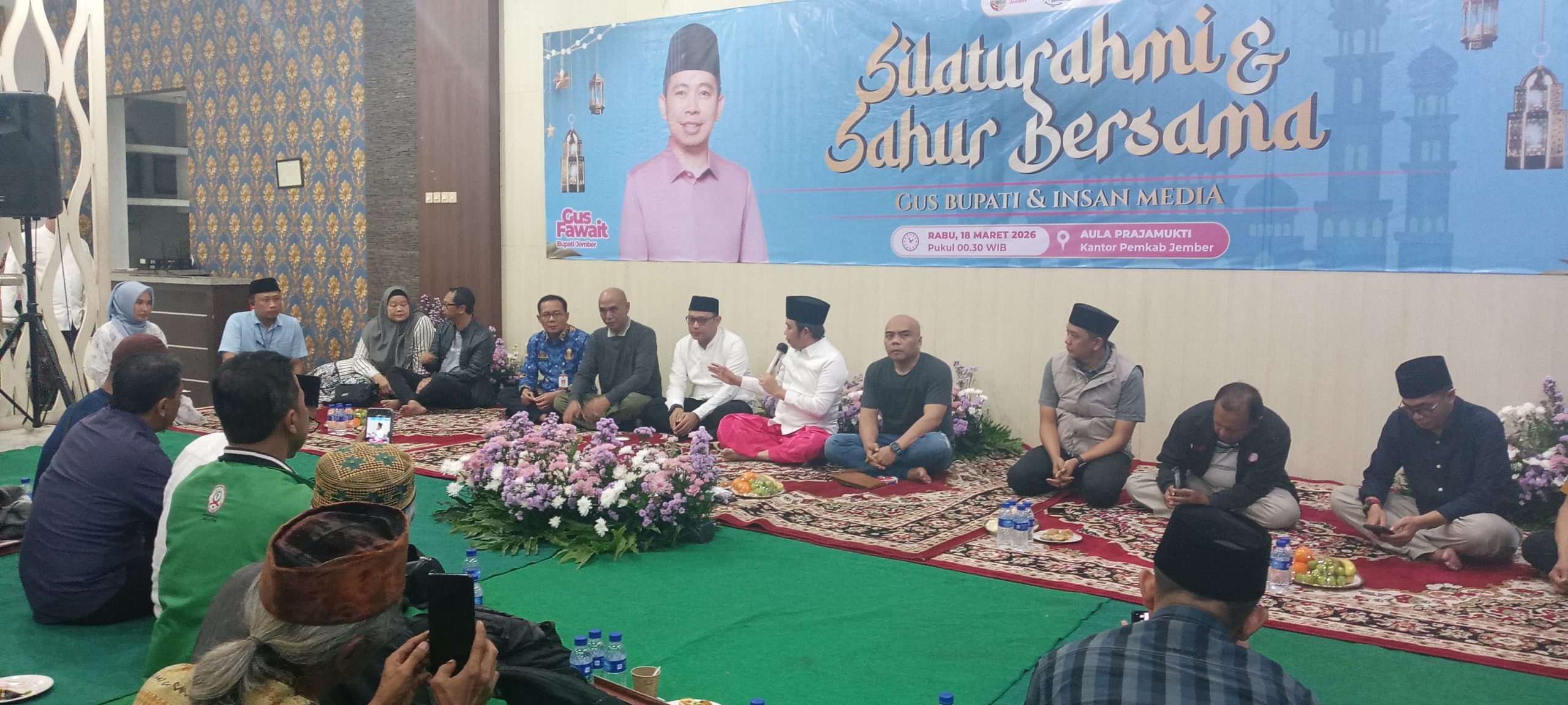 Jember, nusabarong.com –  Bupati Jember menjalin serta mempererat tali silaturahmi bersama awak media se- Kabupaten Jember, Bupati Jember  Muhammad Fawait, S.E., M.Sc., menggelar sahur bersama awak media bertempat di Aula Praja Mukti Pemkab Jember pada malam ke-28 Ramadhan.