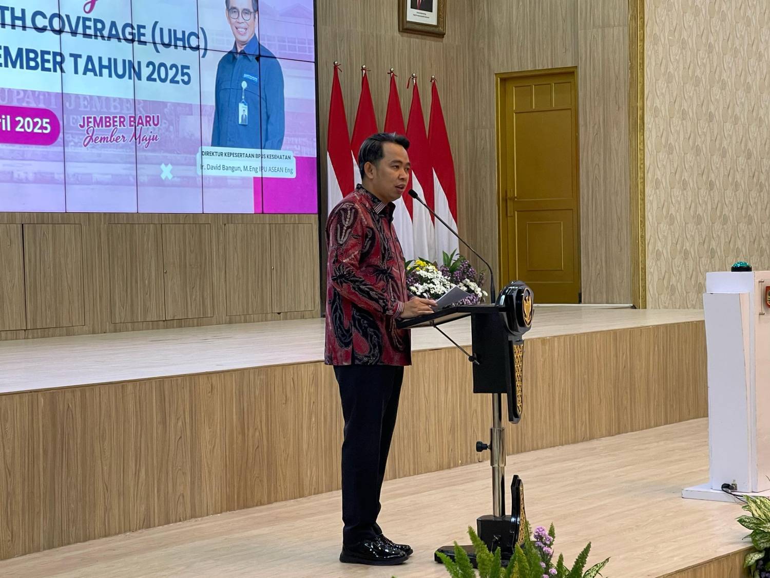 “Sampai dengan bulan Juli 2025 total peserta UHC Kabupaten Jember adalah 2.573.123 orang atau 98,37 persen,” ungkap Adi Wijaya, Asisten 1 Pemerintahan dan Kesejahteraan Rakyat Kabupaten Jember, dalam acara Sosialisasi Program JKN Desa Pesiar Kabupaten Jember Tahun 2025.