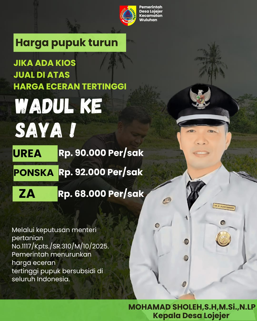 Himbauan keras terhadap kios kios atau agen penjual pupuk bersubsidi berdasarkan Kepmen pertanian no: 1117/Kpts./SR.310/M/10/2025 pemerintah menurunkan harga eceran tertinggi pupuk bersubsidi seluruh indonesia.