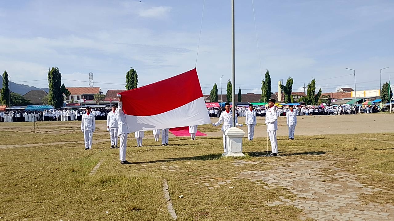 Camat Puger Kabupaten Jember, , memimpin upacara HSN ke- 10 di lapangan Kecamatan Puger.